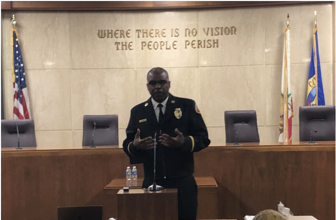 LA County Fire Chief Daryl Osby speaks in Huntington Park